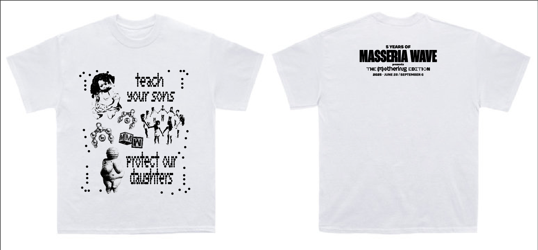 5 Years of Masseria Wave special tee " Teach your sons Protect our daughters" graphic printed.